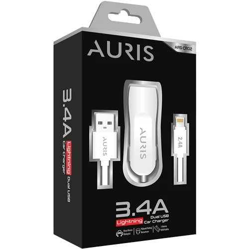 Auris CR09 Araç Şarj Aleti Seti Lightning PD 45W